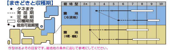 抑制栽培および促成栽培に特に適しています。また、半促成栽培も可能です。