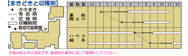 定植は、がく割れから第1花の開花時期を目安に行います。灌水は第1段着果から果実肥大期に徹底し、草勢を見極めながら追肥を行います。