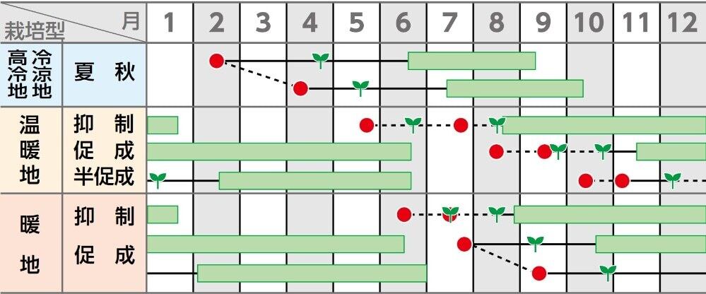 定植は第1花の開花前に行い、果実が肥大する時期に合わせて適切な灌水を実施します。異常な茎の発生を抑えるために注意が必要です。追肥は3段花房の開花時期に行うのが理想です。