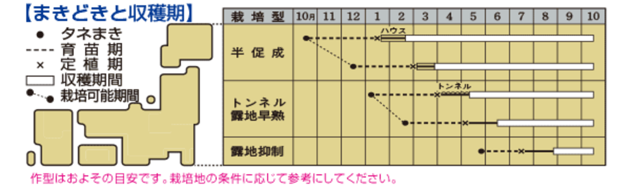 ・草勢は中程度、節間は中短。熟期は極早生で、夏秋栽培に適する。