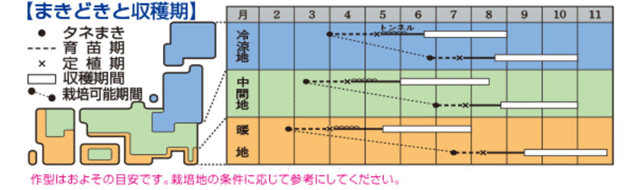 ・本葉3枚程度の若苗を定植し、スムーズな活着に努め、初期生育を安定させる。
