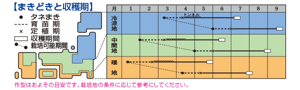 ・子づる2本仕立てを基本とするが、放任栽培も可能。