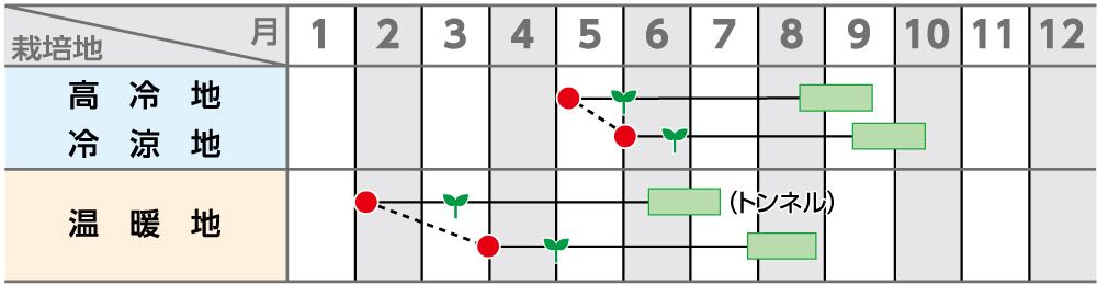 播種日は果実の肥大完了から収穫時期にいたる期間で高温や秋雨の影響を受けないよう設定します。この期間の高温はでんぷんの蓄積を抑制し、また降雨は果実の腐敗や根傷みからくる果実の品質低下につながるので注意が必要です。