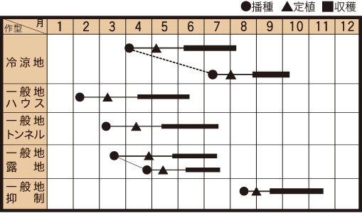 越冬、春の早い作型では授粉を兼ねた品種を2割くらい混ぜると、雌花の多さを生かせる。