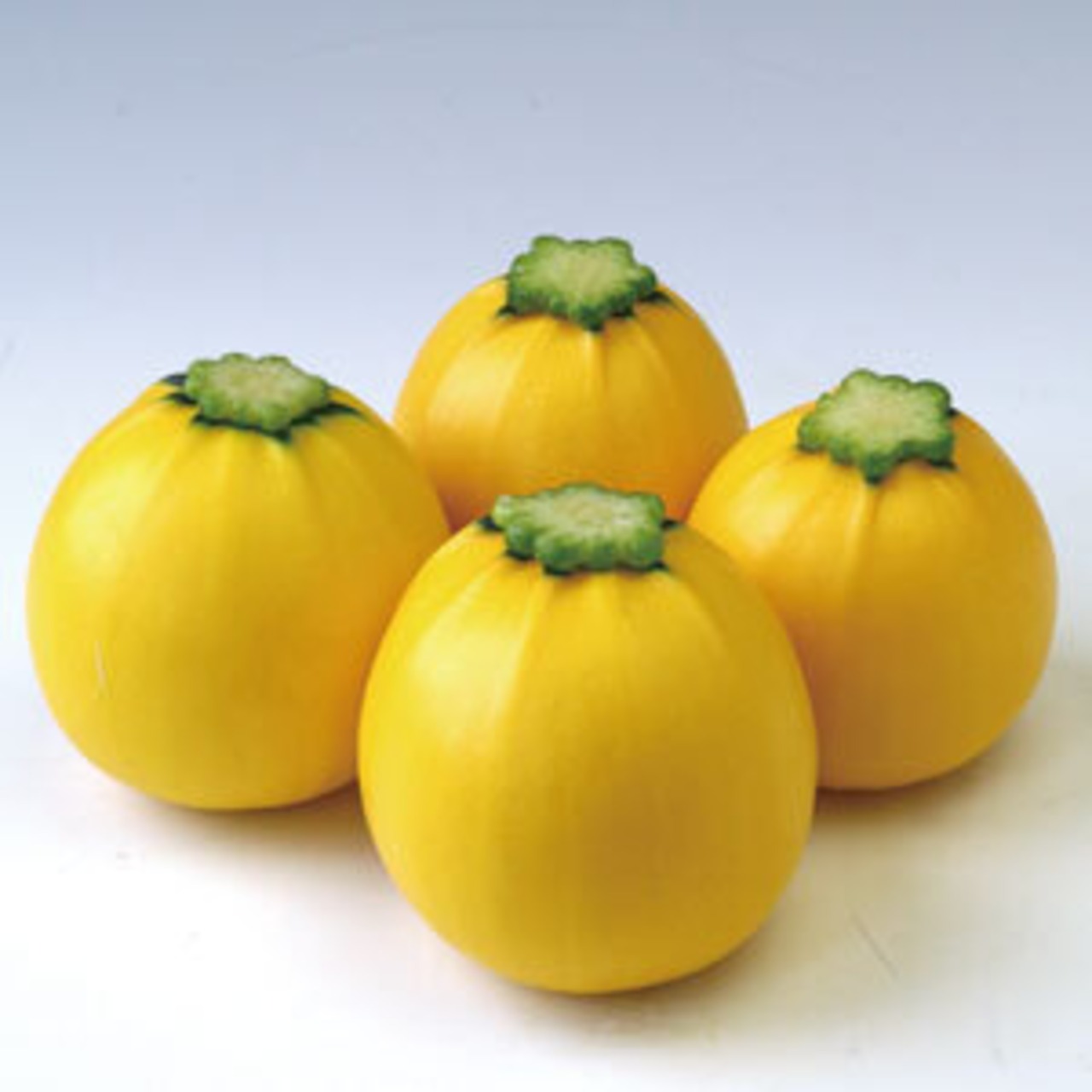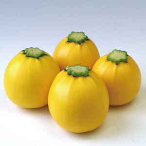 かわいい丸形のズッキーニ、果実色は鮮明な黄色。