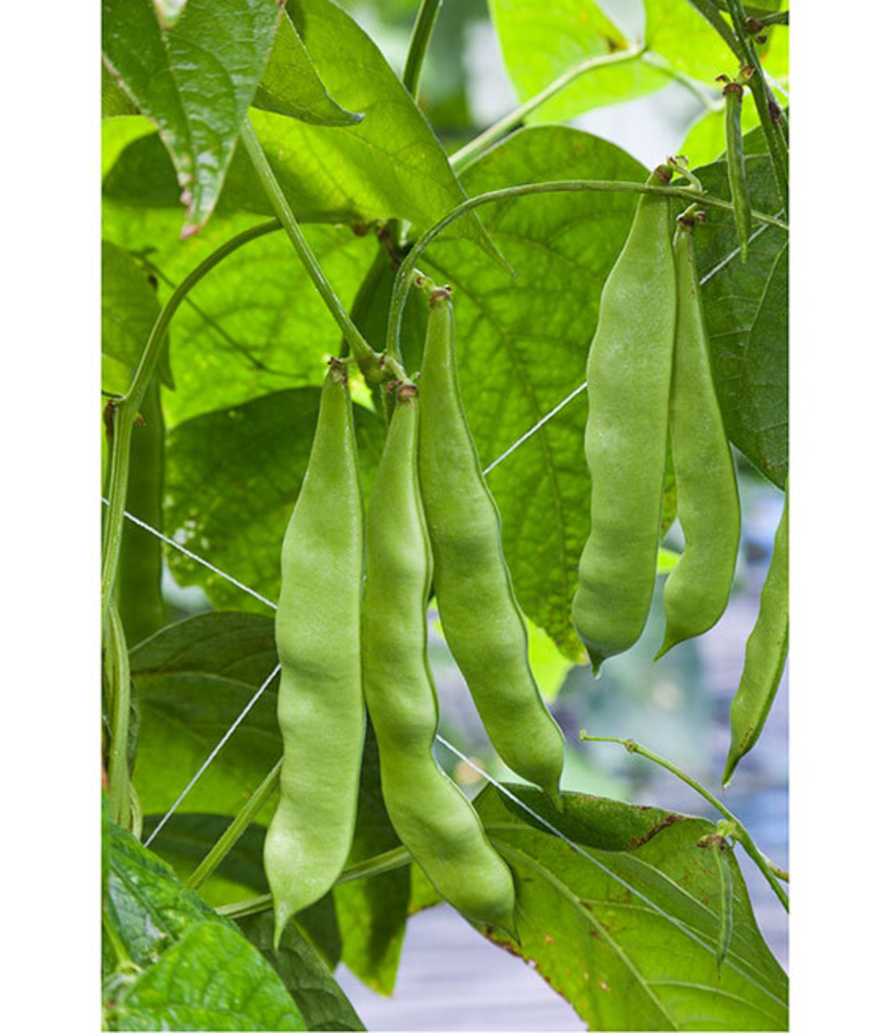 ・莢は長さ14cm、幅1.8cm程度のつるあり種。肉厚の平莢で、食味が格別。