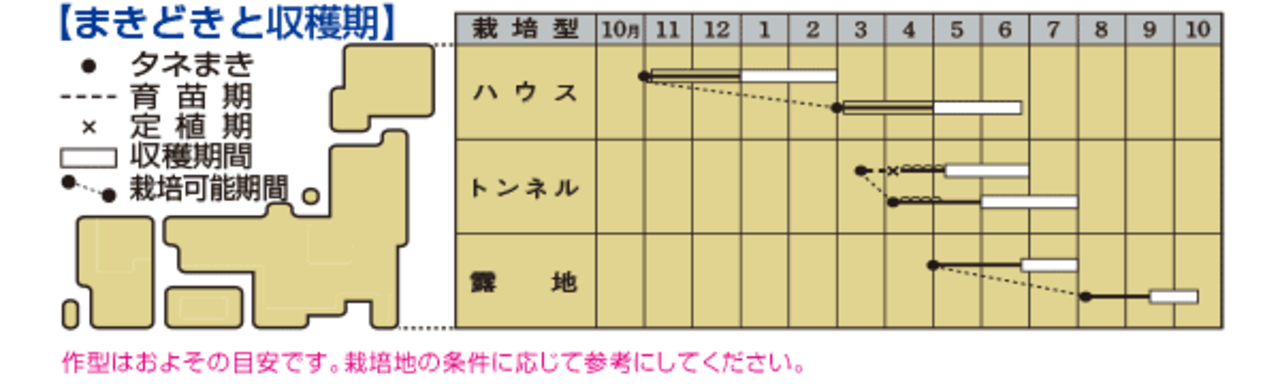 ・草勢旺盛で栽培容易な多収種。直売所出荷や家庭菜園にも特におすすめ。