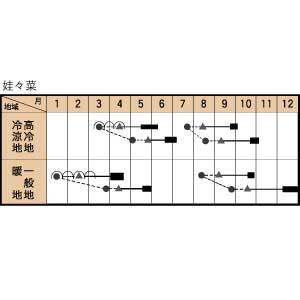 一般地8-9月、トンネルで保温して1-3月播き。高冷地7-8月、トンネルで保温して3−4月播き