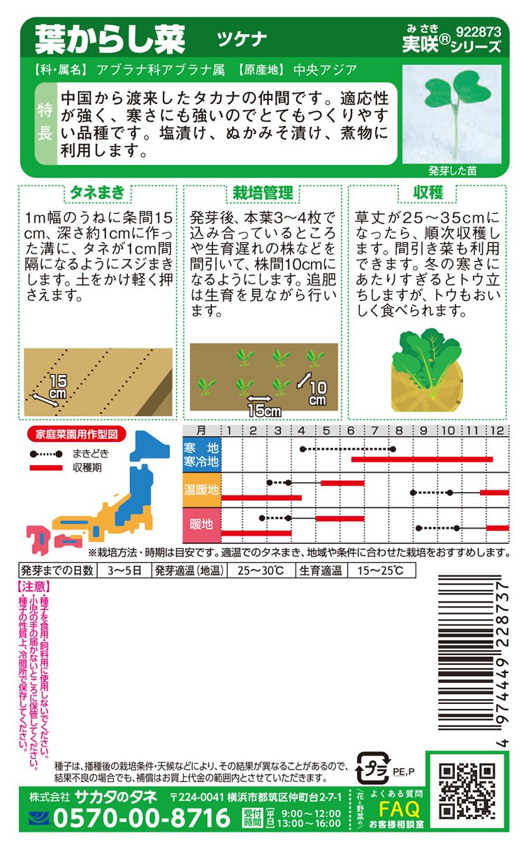 中国から渡来したタカナの仲間です。適応性が強く、寒さにも強いのでとてもつくりやすい品種です。塩漬け、ぬかみそ漬け、煮物に利用します。