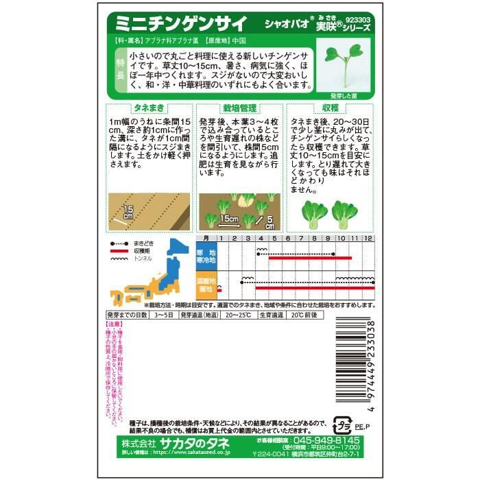 手のひらサイズの画期的なミニチンゲンサイ。柔らかくて風味もよく、とう立ちが遅く作りやすい品種です。丸ごと調理できるのでとても便利です。