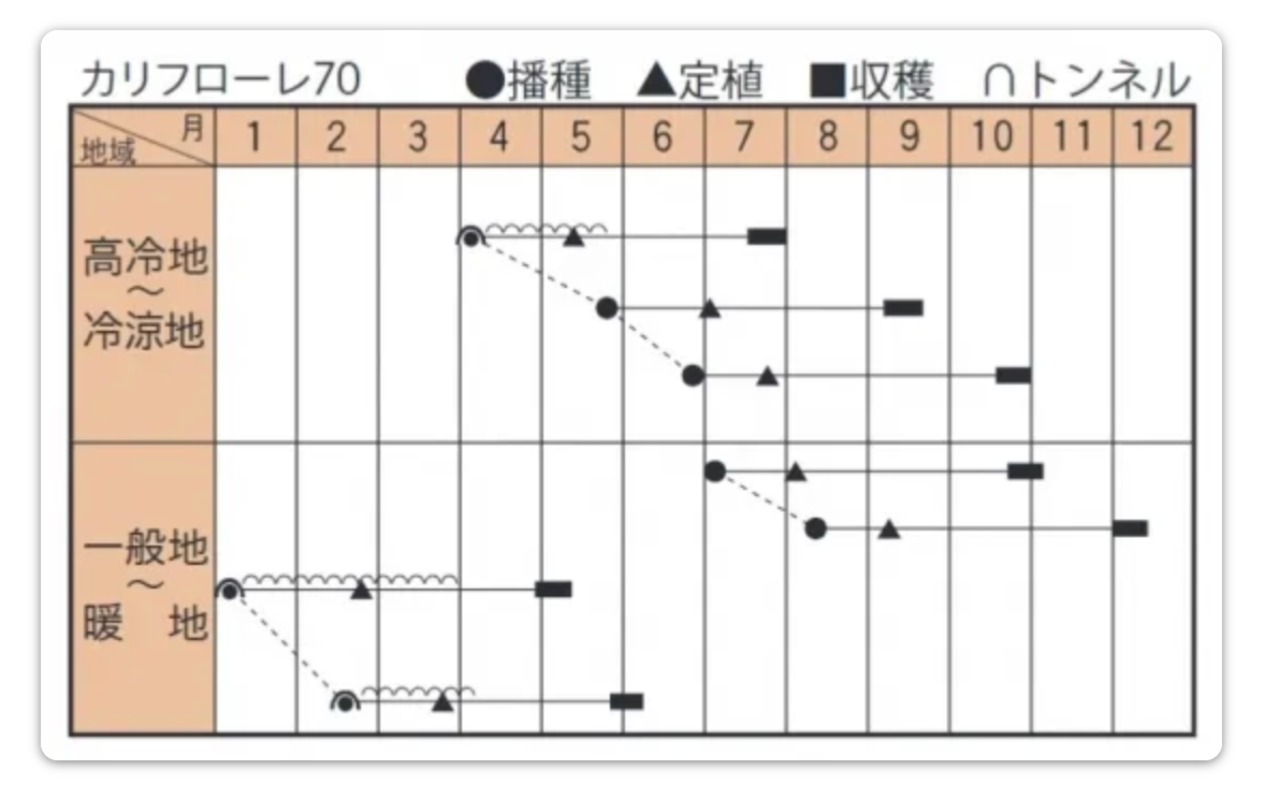 『カリフローレ80』と比べ花梗の伸び上りが良好です。定植直後はトンネル保温が必要です。黒腐病等の病害に対しても強いです。