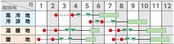 北海道(道央)では、4月下旬まき7月上旬~どりで能力を発揮します。 関東以西の一般地、暖地では、7月中旬~8月上旬まき11月どり1月下旬~2月上旬まき5月どりに最適です。 ただし、高冷地・冷涼地の2月まきと一般地の1月まきでは、育苗中に低温を強く受けると、早期出蕾(ボトニング)の恐れがあります。また一般地・暖地の6月まきの高温下では品質低下を招きやすいので、7月以降の播種とします。