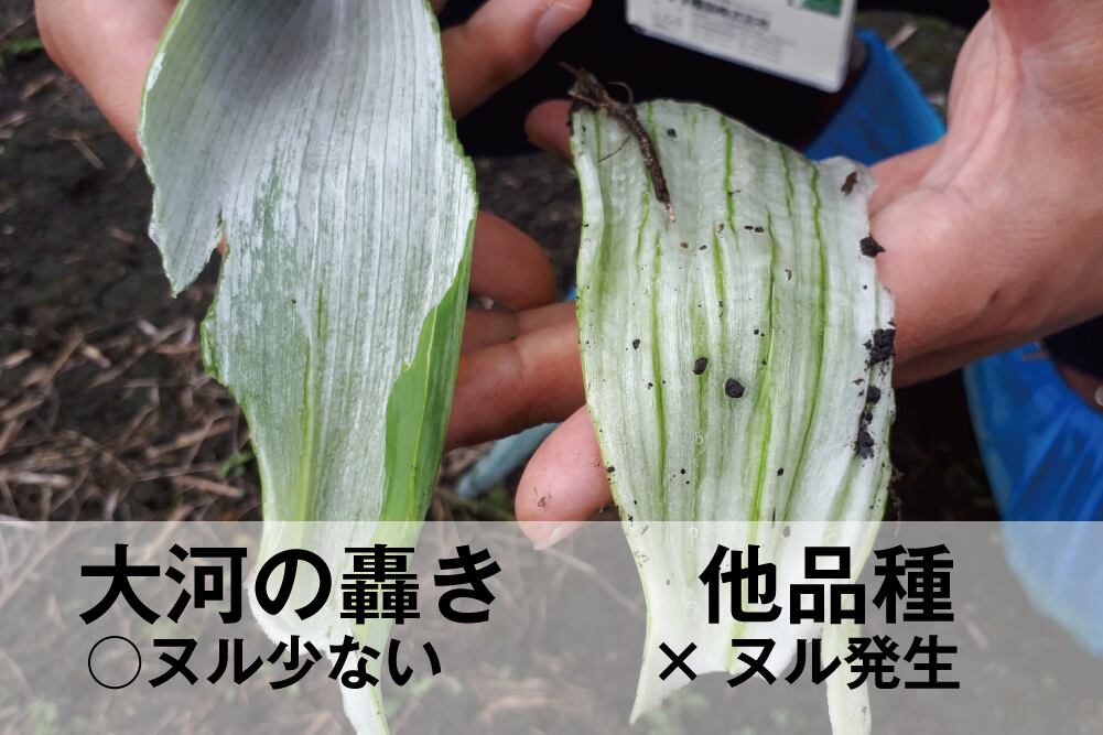 「大河の轟き」は分けつの発生もなく、品種の特長である、肥大性、伸張性を実証できました。今年の陽気で抽苔の発生も早いですが、「大河の轟き」は問題なし。