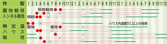 ・4〜9月の栽培では露地栽培をさけ、雨よけ栽培とする。
