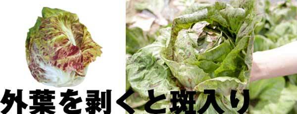 カステルフランコの名で有名なヴァリエガト種。クリーム色に赤い斑が入る美しい葉は様々な料理に彩を添える。本種は結球するタイプ。