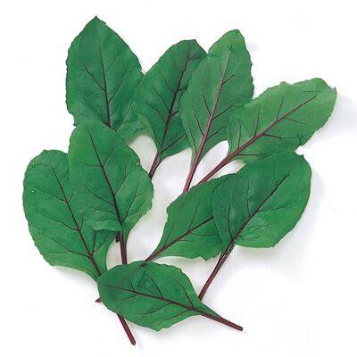 ●鮮やかな葉の緑と茎の赤色が料理のアクセントに。