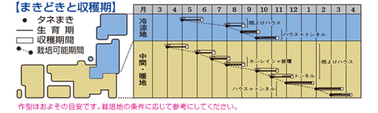・生育旺盛で作りやすく、秋~春どりを中心に周年栽培にも適する。