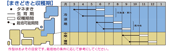 ・生育日数は65~70日程度であるが、発芽は8~12日を要し、初期生育も遅いので、畑は深耕し、よく砕土して播種する。