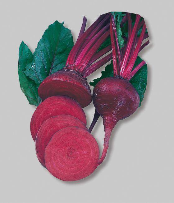 ・根部は整った球形で中まで深紅に着色し、料理の彩りに美しい。